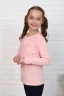 Блузка для девочек младшего и старшего школьного возраста, из трикотажного полотна кулирка с лайкрой. Блузка прилегающего силуэта, с втачным рукавом, с центральной застежкой на спинке на петлю и пуговицу, с воротником из шифона. Спереди отсутствуют линии членения. На спинке вырез в виде капельки под застежку. Рукав одношовный, длинный. Низа рукавов и изделия подогнуты. Воротник состоит из двух частей со складками. Спереди по центру прикреплена брошь.