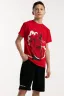 Костюм для подростков состоит из двух изделий - футболки и шорт. Футболка выполнена из ткани с абстрактным принтом. Футболка прямого свободного кроя, круглый вырез горловины, втачной рукав. Шорты выполнены из футера 2-х нитки, прямого кроя, с удобной посадкой. На передней половинке шорт - печать.