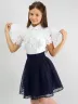 Блузка для девочки Соль&Перец. Отложной воротник выполнен из кружева, рукава-крылышки выполнены из лёгкого фатина. Мягкий, приятный к телу материал - шифон, обеспечит идеальную посадку изделия по фигуре. Блузка дополнена съёмным галстуком из кружева. Прекрасный выбор для создания красивого школьного образа.