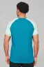 Мужская футболка в ярких расцветках с рукавом - регланом и фирменным логотипом на плечах. Воротник V-образный, двойной. На груди и сзади небольшая печать.