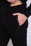 Мужской костюм спортивного плана. Кофта и карманы по бокам на молнии, сверху карман - обманка. На рукавах, по бокам кофты и сверху - вставка из плащевки. Воротник - стойка, рукава и низ кофты на манжетах. Брюки на манжетах, карманы на молнии, с декоративной листочкой. Сбоку на брюках и толстовке вышивная надпись.