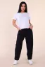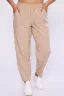 Модные женские брюки-бананы из смесовой ткани с содержанием льна. Свободные, зауженные к низу с помощью вытачек, широкий пояс на резинке, по бокам внутренние карманы. Длина брюк до щиколотки (рост модели 165 см). Очень комфортны и удобны в носке, не мнутся, отлично смотрятся со спортивной обувью.