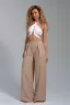 Брюки-палаццо – мастхэв базового женского гардероба. Модель выполнена из качественной льняной ткани. Материал прочный, приятный на ощупь, хорошо струится и дышит. Изделие представлено в классических модных цветах. Широкий крой со складками и высокой талией создает красивый силуэт и обеспечивает удобную посадку, на любой тип фигуры. Пояс выполнен на специализированной поясной машине, что добавляет изделию качество на долгое время и эстетичность. На брюках имеются боковые карманы с усиленными закрепками на закрепочной машине. На модели представлен 46 размер - фигура соответствует параметрам размера. УХОД ЗА ИЗДЕЛИЕМ: бережная стирка при максимальной температуре 30ºС, не отбеливать, машинная сушка запрещена, глажение при 110ºС, профессиональная сухая чистка, стирать вывернутым наизнанку, глажение с использованием специальной сетки, стирать с изделиями похожих цветов . Брюки такого плана идеально впишутся в городской стиль, элегантность и комфорт, женственные силуэты и мягкие линии, расслабленные, нарочито небрежные образы, стильные и комфортные. Широкие брюки со складками – модная одежда для женщин на любой случай жизни. Подойдут для стильных повседневных луков, офисных аутфитов, нарядных вечерних образов и прогулок.