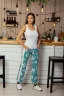 Брюки свободные, прямые, с карманами, на поясе. Вдоль боковых швов расположены лампасы из отделочного полотна. Можно составить комплект с майкой 8238