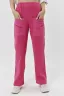 Брюки свободные, прямые, с накладными карманами, на поясе.