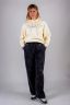 Пояс брюк выполнен из плотной и толстой резинки, что обеспечивает плотное, но комфортное облегание на талии без лишнего давления.