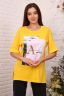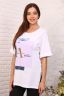 Футболка женская оверсайз. Свободного покроя со спущенными плечами. Горловина округлой формы, по бокам футболки разрезы. На полочке выполнен модный принт. В этой футболке Вы будете выглядеть стильно.