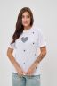 Женская футболка элегантного приталенного кроя с короткими рукавами и классическим круглым вырезом горловины. Минималистичный дизайн дополнен нежными маленькими принтами в форме сердец с леопардовым узором, создающими тонкий акцент на образ. Материал приятен к телу, обеспечивает комфорт и свободу движений. Идеально подойдет для повседневного стиля, подчеркивая женственность и утонченность облика обладательницы.