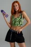 Топ на узких бретелях, с округлой горловиной на полочке и вырезом "борцовка" сзади. Горловина, проймы и вырез на спинке обработаны бейкой из основного полотна.