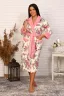 Элегантный женский халат из велюра, рукава чуть ниже локтей, по бокам накладные карманы, общая длина приблизительно ниже колен.