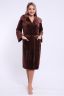 Халат женский на запах из ткани велюр. Халат на запах с поясом и с капюшоном, карманы по бокам настрочные, рукав 3/4 широкие с манжетами. Длина халата средняя, размер полный. Цвета насыщенные благородные с переливом.