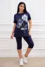 Костюм женский футболка и бриджи. Футболка с коротким рукавом, бриджи с карманами. На полочке принт