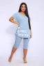 Представляем вашему вниманию женский домашний спортивный костюм, который идеально подходит для комфортного времяпрепровождения дома и на даче. Этот комплект включает в себя удобную футболку и стильные бриджи, которые глубоко заботятся о вашем комфорте. Изготовленный из мягкого и дышащего материала, он отлично подходит для расслабления и активного отдыха. Футболка обладает лаконичным дизайном, что добавляет универсальности, а бриджи прекрасно сочетаются с ней, создавая непринужденный ансамбль. Такой набор станет идеальным выбором в качестве домашней пижамы, позволяя вам чувствовать себя уютно и привлекательно.