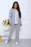 Костюм женский, выполнен из трикотажного полотна футер 2 нитка. Костюм состоит из кофты и брюк. Кофта свободного силуэта, на полочке выполнена печать. Брюки свободного кроя, по бокам карманы.