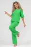 Модный стильный костюм - идеальное решение для тех, кто ищет лёгкую и красивую одежду на каждый день. Костюм, футболка и брюки, выполнен из кулирки гипе жатка компакт. Жатка - это ткань с "мятой" структурой, декоративными заломами и складками. Имеет много положительных качеств: хорошо тянется, упругая, красивая текстура, неприхотливая в уходе, прочная, износостойкая, не мнётся, не нуждается в глажке и приятная к телу. Футболка выполнена со спущенным рукавом, отстроченной обтачкой по горловине и двумя небольшими разрезами по бокам. На брюках имеется два вместительных боковых кармана и пояс, обработанный на специализированной поясной машине. Данная модель костюма очень удобна в качестве повседневной одежды, а универсальный фасон хорошо скроет недостатки и подчеркнет достоинства фигуры. Свободный крой комплекта "двойки" не сковывает движения, что делает его очень удобным в носке, резинка не перекручивается, а высокая посадка брюк - палаццо даёт ощущение комфорта. Такой костюм можно использовать как в качестве костюма для фитнеса, так и как вариант домашнего костюма, в нем также можно поехать на дачу или отправиться на вечернюю прогулку. Однотонный дизайн летнего брючного костюма без принта, надписей и декоративных элементов будет гармонировать с любым стилем одежды, а дополнить образ с модным костюмчиком можно любимыми аксессуарами и украшениями. Свободную футболку и брючки можно носить как вместе, так и отдельно. Футболку с коротким рукавом и разрезами по бокам можно легко сочетать с джинсами, юбками и шортами. К брюкам с карманами можно также подобрать любой верх. Образ с костюмом можно дополнить кроссовками, кедами или туфлями. Мягкий, прочный, хлопковый материал не дает усадку, не теряет форму после стирки и не линяет, его можно стирать в режиме бережной стирки при 30 градусах. Также данный трикотажный костюм не скатывается и не вытягивается за счет небольшого количества полиэстера в составе. Такой однотонный костюм с широкими брюками подойдет для разной возрастной категории. Он идеально подойдет для беременных и мам с детьми. Хорошо сядет на высоких и невысоких представительницах прекрасного пола всех возрастов. Такой универсальный прогулочный женский костюм станет отличным подарочным вариантом, его можно подарить маме, дочери, жене, бабушке, подруге или порадовать себя любимую даже без повода. Наш костюм благодаря своей практичности и лаконичному дизайну будет служить Вам долгие годы.