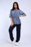 Костюм женский футболка и брюки. Футболка полуприлегающего силуэта. Рукав короткий на спущенном плече. Разрезы в боковых швах. Брюки прямого кроя.