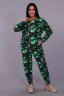 Женский брючный костюм из футера прямого силуэта. Брюки свободные, с внутренними карманами на передней части, толстовка с длинными рукавами без воротника, небольшая декоративная черная лента с белой надписью слева у горловины и на рукаве.
