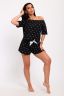 Пижама женская футболка и шорты. Футболка свободного кроя с широким вырезом горловины. Рукав короткий на спущенном плече.