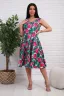 Платье-сарафан из натурального набивного трикотажа. Лиф приталенного силуэта. Юбка трёхъярусная , пышная. Горловина круглой формы. Рукавов нет. в боковых швах карманы.