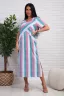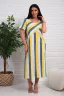 Платье из натурального набивного трикотажа. Силуэт прямой. Длина миди. Рукав короткий. Горловина круглая. На полочке фигурные подрезы. Карманы и разрезы в боковых швах.