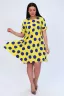 Платье женское расклешенного силуэта, округлый воротник, короткий рукав, задняя полочка длиннее передней. Легкое и удобное.