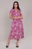 Платье женское очень красивой и оригинальной расцветки выполнено из ткани хлопок. Платье удлиненное, приталенное, с расклешением к низу. Вырез платья V-образный за счет запаха на полочке, что придает изделию элегантность и комфорт. Модель подойдет для прогулок, отдыха и дома.
