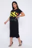 Летнее платье с коротким рукавом, с ярким принтом, с длиной ниже колена выполнено в стиле "бочонок", что удачно позволяет подчеркнуть все изгибы женского тела и спрятать лишнее. Платье имеет два внутренних кармана, обтачка горловины из основной ткани, рукав в подгибку. В производстве использована ткань высшего качества"компакт, плотностью 170грамм.