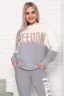 Толстовка женская оригинального кроя, с капюшоном и крупным принтом на полочке, без карманов, плечо спущенное.